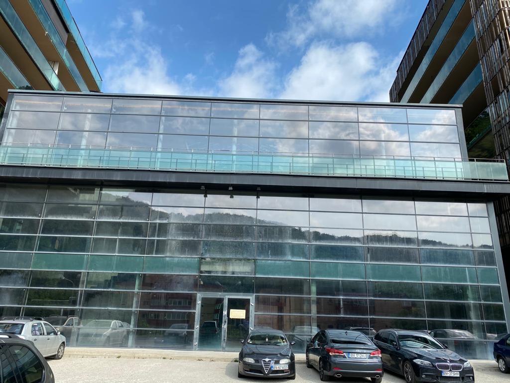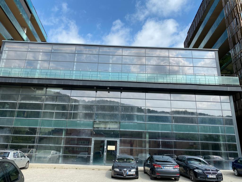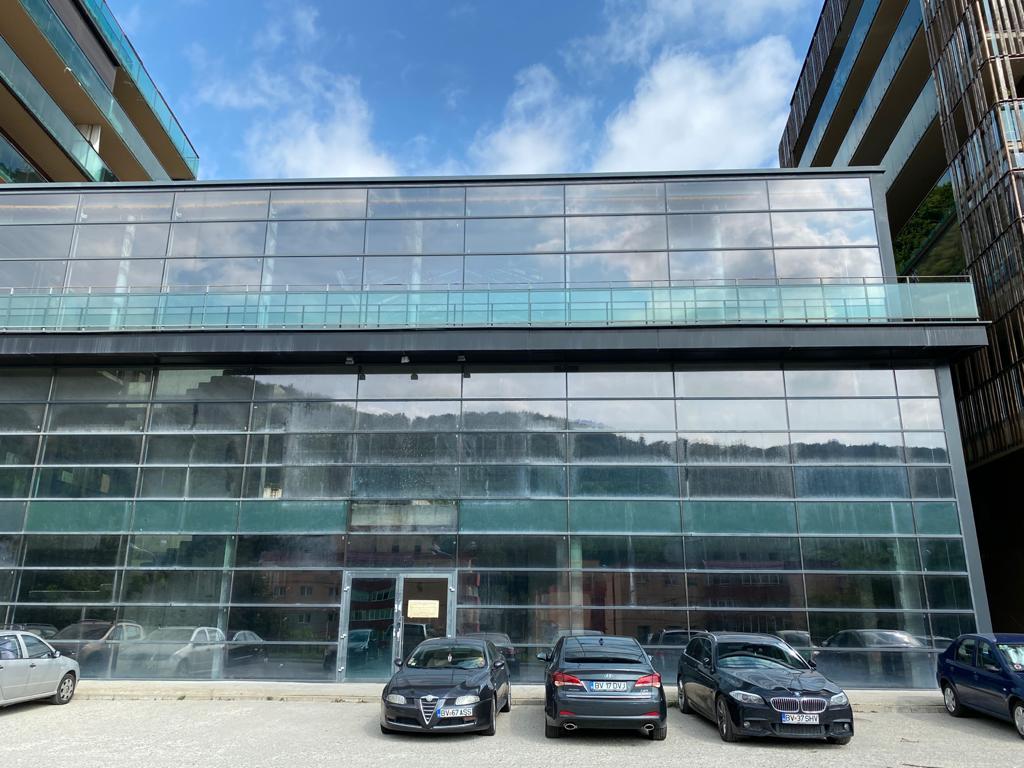 Imobil situat in Brasov, in suprafata desfasurata totala de 2400 metrii patrati, 70 locuri de parcare aferente imobilului. Exista posibilitatea ca imobilul sa fie extins cu inca 800 metrii. Pretul inchirierii este exprimat in euro / mp / luna.