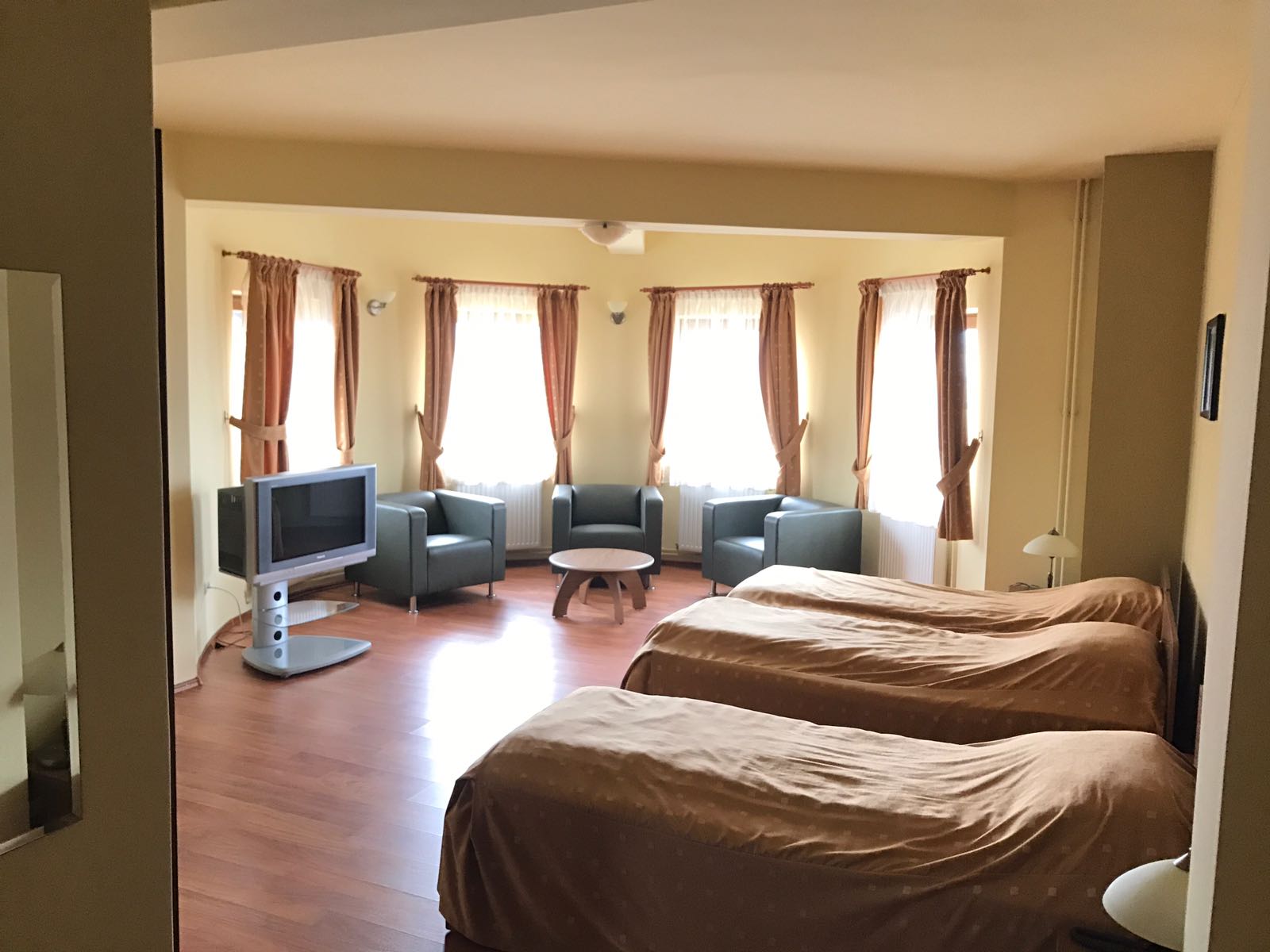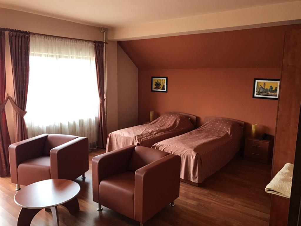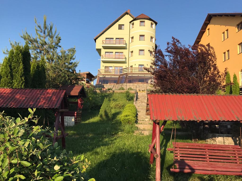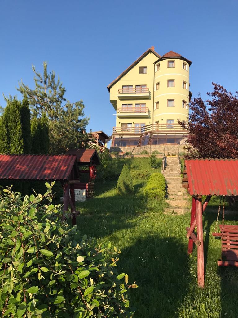 Vila D+P+2E+M situata la intrarea in satul Sohodol dinspre Tohanul Nou,pe un deal cu o priveliste minunata spre muntii Piatra Craiului,Bucegi,Postavarul,cetatea Rasnov si magura Codlei,precum si spre rezervatia de ursi de la Zarnesti.Cladirea este construita pe un teren de 1440mp cu amprenta la sol de 231mp.Fundatiile sunt din beton armat,zidarie din caramida GVP portanta,termoizolatie din polistiren de 8cm,iar la mansarda vata minerala si rigips,acoperișul fiind confectionat din sarpanta lemn acoperita cu tigla Bramac.Burlanele si jgheaburile sunt din tabla zincata.Usile de la intrari si geamurile sunt din tamplarie PVC cu geam termopan,lafel si vindfangul care inchide scara exterioara dintre parter si demisol.La interior pardoseli din gresie la bucatarie,bai,sala gimnastica,sala de mese,sala de conterinte si scara interioara din fier forjat.Pardoselile din holuri si camere sunt din parchet pluristratificat.Compartimentarea cuprinde 12 camere cu suprafete intre 16 si 32mp(5 avand si balcon),fiecare cu baie proprie,telefon ,televizor,internet.La parter exista grup sanitar pe sexe pentru sala de conferinte. La demisol mai exista spatii de depozitare,magazie,spalatorie,dulap vestiar pentru personal, 2 grupuri sanitare cu dus,precum si camera centralelo unde sunt amplasate 1 centrala termica pe lemne de 80 kw( VIGAS),1 centrala pe peleti complet automatizata de70-100 kw(Hoval Biolyt),2boilere de cate 600 l care pot fi actionate si electric.Tot la demisol se afla amplasata pompa electrica pentru apa din rezervorul de 6000l amplasat in curtea de la intrare in pamint si racordat in permanenta la reteaua principala de apa(intra in actiune doar la sacadere de presiune sau in caz de avarie). Apele menajere sunt colectate intr-o statie de epurare proprie(TOPAS 32),cu filtrarea apei amplasata in interiorul proprietatii si cu decantor pentru grasimi.Alimentarea cu curent electric provine de la reteaua de medie tensiune cu transformator la limita proprietatii,exista si priza de curent trifazic.Puterea instalata este de 30kw iar absorbita de 20kw,fiind instalata si o priza de curent trifazic .La intrarea principala exista o curte pavata cu dale de piatra,in stanga acesteia fiind amplasata o magazie pentru aproximativ 100mst de lemn sau 30 t peleti,care pot fi aruncate, pe un jgheab din beton armat,direct in camera centralei.Tot in curtea din fata exista bransament de apa pentru pompieri.Curtea din spate este impartita in doua,si anume- o terasa pavata cu dale de piatra prevazuta cu un grill si banci de lemn,iar restul gradinii este tersata si amenajata cu doua leagane din lemn,spatiu pentru foc de tabara sau copt batal si arbusti ornamentali si fructiferi,existand si o cismea cu apa potabila..Vila este dotata cu mobilier,sala de gimnastica cu aparate.In bucatarie exista doua plite si cuptoare electrice.Exista instalatie de avertizare antiefractie cu senzori de miscare si alarma deincendiu cu senzori de fum precum si instalatie de supraveghere video atat pe holuri cat si in exterior.